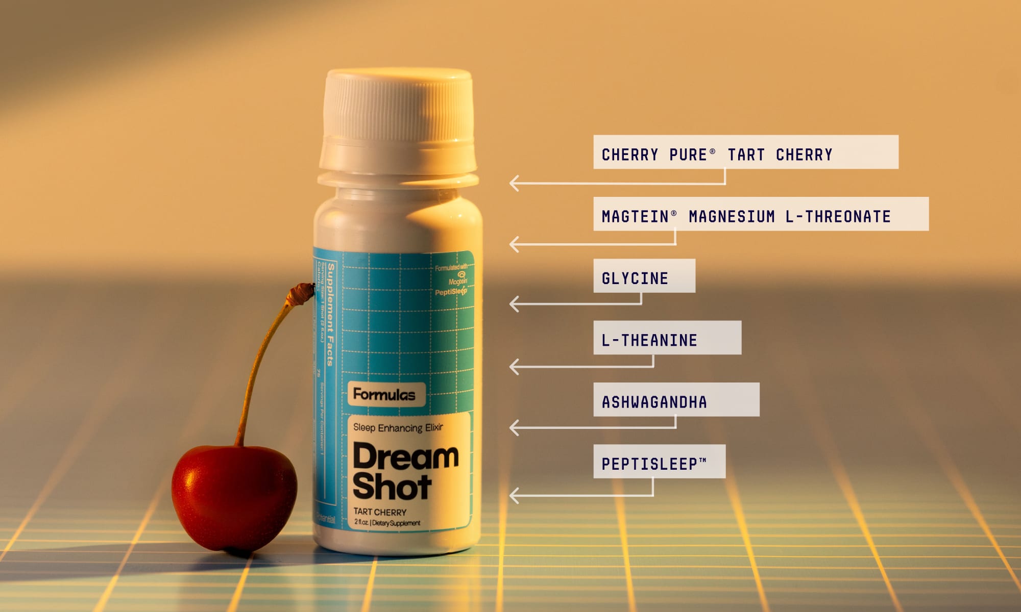 Peptides are short chains of amino acids, which are the building blocks of proteins. The peptides in Dream Shot have been shown to decrease cortisol, which lowers alertness.