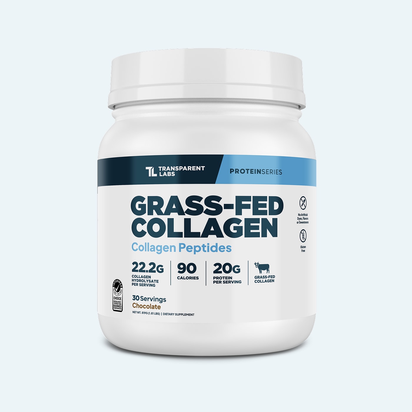 22g of hydrolyzed bovine collagen peptides per serving from grass-fed, pasture-raised cows. Provides types I and III collagen—the structural proteins that comprise your skin, joints, bones, tendons, and ligaments. Third-party tested, Informed Choice certified, and free from hormones, antibiotics, and artificial additives.